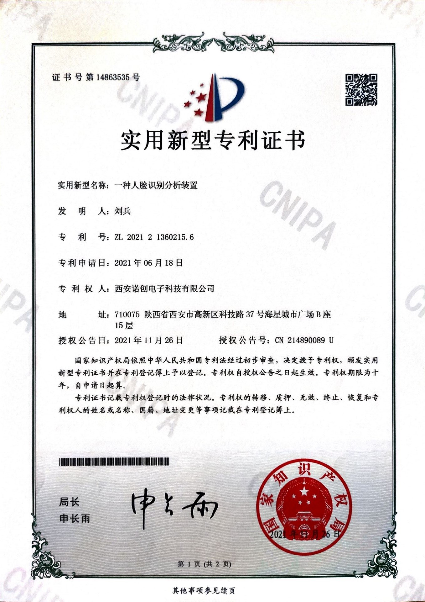 專利證書